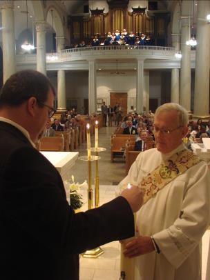 Newly baptized light the assembly’s candles in preparation for the Renewal of Baptism Promises |