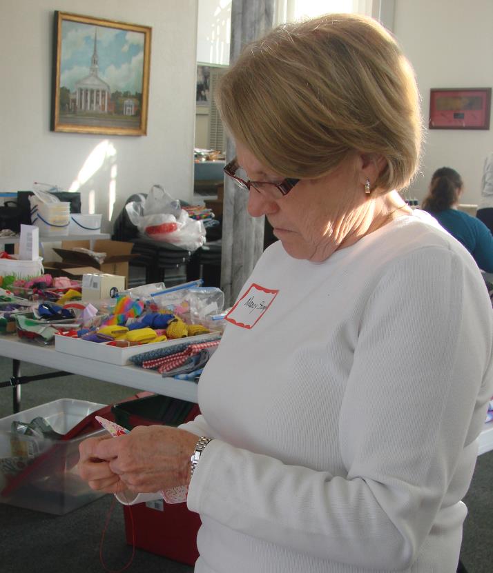 Those who aren’t sewing are cutting out clothes, pressing seams, making bias tape and creating Friendship bracelets and little dolls for the pockets of the “Love Dresses” and shorts. Every pocket will have a little gift. |